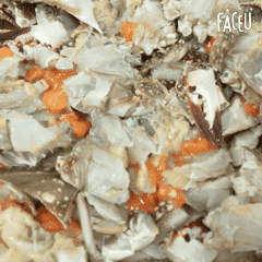 九、掰開后的螃蟹千萬不要再清洗了,包括黑乎乎的膏體千萬不要洗清哦!