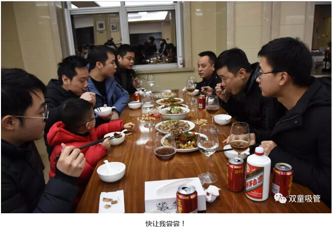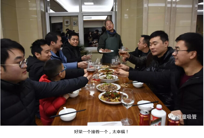 上菜咯!我們在員工餐廳里席開六桌,所有“雙童”管理層、后勤人員和部分前員工們都有口福啦!忙碌了一整年,竟然有大BOSS為自己服務(wù)的一天,還真是沒想到呢!