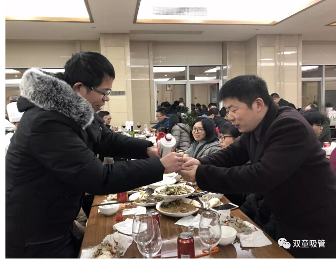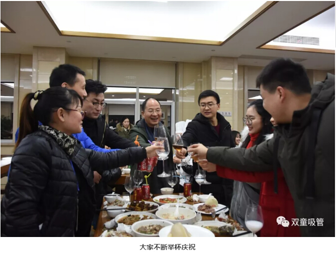 終于,樓大廚也圓滿完成了自己的“廚師”任務(wù),來到席間與大家一同享用美味。瞧,大家拿著酒杯不斷敬酒,感謝同事們一年下來的配合幫助。一輩子不喝酒的樓總也用一碗湯與大家干杯,現(xiàn)場熱鬧極了!大家吃飽喝足,明年有勁,擼起袖子加油干吧!