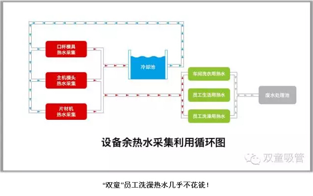 “雙童”很摳,摳在連“余熱能源”都要采集!我們?cè)诮◤S之初,通過對(duì)車間模具冷卻用水的收集,把熱水供應(yīng)到寢室樓給員工洗澡洗衣生活之用。同時(shí)我們也把生產(chǎn)設(shè)備的余熱和廢氣進(jìn)行采集并回收,經(jīng)過凈化處理后再供應(yīng)給車間進(jìn)行供熱,從而高效利用了余熱能源。