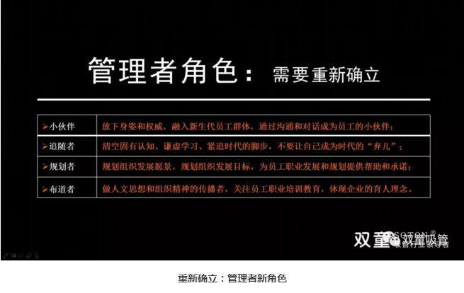 下面,我們馬上進(jìn)入今天的主題,和大家分享管理者應(yīng)該扮演的四個(gè)新角色: