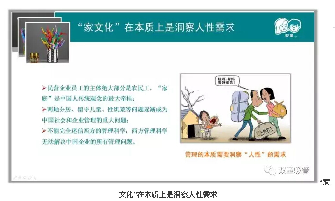 所以,雙童“家文化”理念和“公司不是一個(gè)家”的觀點(diǎn)并無沖突,反而是最貼切的印證!雙童樓仲平也曾這么形容“幸福”:我最大的幸福就是當(dāng)我自己在賺到錢的時(shí)候,還能聽到員工在夸我們這個(gè)老板好!親,你認(rèn)同我們的觀點(diǎn)嗎?