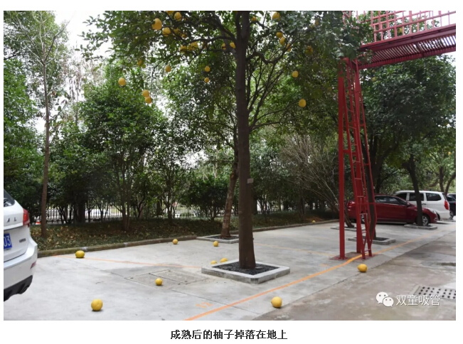 原來,為了“雙童”的生態(tài)和美觀,公司明確柚子是觀賞性水果,每棵柚子樹上都有“觀賞水果,請(qǐng)勿摘食”的字樣,提醒和引導(dǎo)員工不要摘食觀賞水果。
