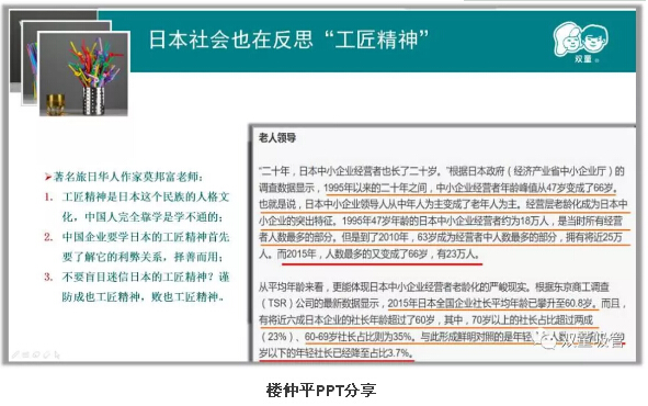 帶著上述疑問,吸管妞今天就通過“雙童”樓仲平的一段講課小視頻,和他長期接觸日本中小企業(yè)的感受,引導(dǎo)大家認(rèn)知新時(shí)代背景下的“新工匠精神”!