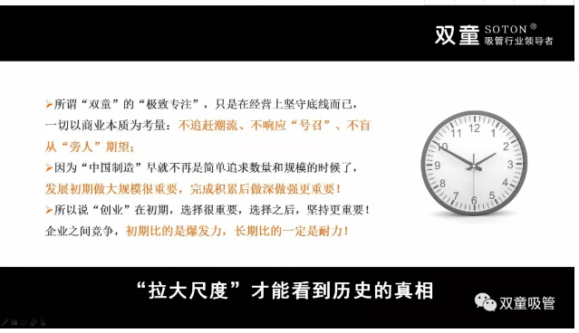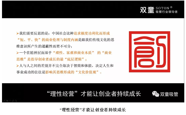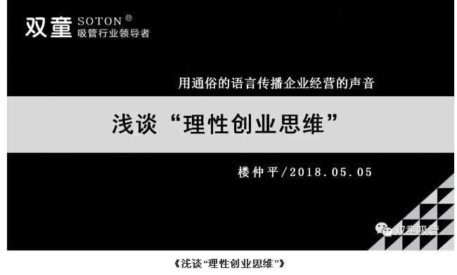 當我們透過現(xiàn)象看本源,雙童的“創(chuàng)業(yè)觀”,實質(zhì)是單點突破、拉大尺度、尋求質(zhì)變、基于長遠發(fā)展的“理性思維”,實質(zhì)是“理性思維”下的“科學發(fā)展觀”!