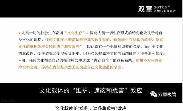 所以,由于任何文化都具有的遮蔽性,每個人都會不自覺地擁有自己的文化思想體系。作為創(chuàng)業(yè)者或管理者來講,我們也要不斷調(diào)整自己的思想狀態(tài)和文化結構。如果我們獲取知識的過程始終保持原有文化思想的渠道延伸,就會導致我們總是在原有思想模型中積累,這樣的積累只是增加信息量而已,絕無改變自己文化思想結構的可能!