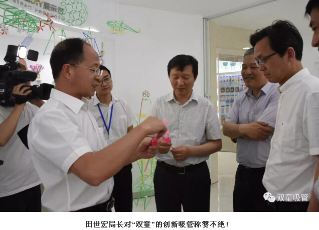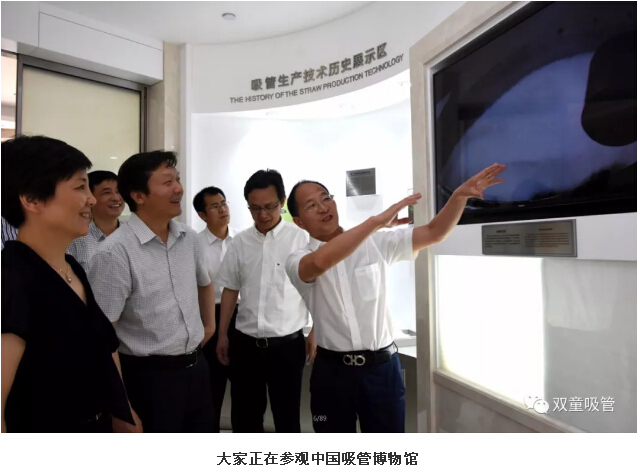 “雙童”樓仲平首先帶領(lǐng)田世宏局長一行來到中國吸管博物館。大家一起參觀了產(chǎn)品發(fā)展歷史展示區(qū)、吸管生產(chǎn)技術(shù)展示區(qū)、吸管產(chǎn)品形態(tài)展示區(qū)等各類吸管的展示區(qū)域,了解了吸管的發(fā)展與變遷。琳瑯滿目的創(chuàng)新吸管產(chǎn)品也讓田世宏局長稱贊不絕!