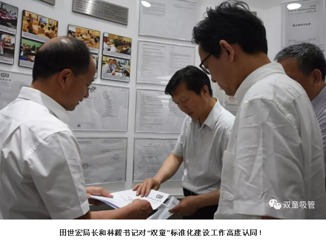來到吸管產(chǎn)業(yè)發(fā)展和歷史資料展示區(qū)時(shí),田世宏局長看到吸管行業(yè)的第一個(gè)標(biāo)準(zhǔn)在1997年由“雙童”起草制定,還先后主導(dǎo)起草了《聚丙烯飲用吸管》的行業(yè)標(biāo)準(zhǔn)、浙江制造團(tuán)體標(biāo)準(zhǔn)、中國國家標(biāo)準(zhǔn)、ISO國際標(biāo)準(zhǔn)等國家級(jí)標(biāo)準(zhǔn)的編制工作,牢牢掌握了全球吸管行業(yè)發(fā)展的脈搏!所謂一流企業(yè)做標(biāo)準(zhǔn),田世宏局長對“雙童”的標(biāo)準(zhǔn)化建設(shè)工作給予了高度認(rèn)同,為“雙童”獲得全球吸管產(chǎn)業(yè)的標(biāo)準(zhǔn)制定權(quán)和行業(yè)話語權(quán)感到驕傲!