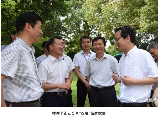 在參觀過程中,林毅書記對“雙童”商標(biāo)由來表示好奇。樓仲平也現(xiàn)場和大家分享了“雙童”商標(biāo)的由來故事:“‘雙童’的商標(biāo)實(shí)際上是‘撿’來的。這個(gè)商標(biāo)在90年代期間幾乎全國的吸管廠都在用,產(chǎn)品、包裝、規(guī)格都一樣,只是廠家信息不同。我拿著這個(gè)圖案找義烏工商局咨詢,知道沒人注冊時(shí),用了2000元搶占先機(jī)把這個(gè)圖案注冊為商標(biāo),在和妻子商議之后,確定了“雙童”作為商標(biāo)的名字,兩個(gè)兒童一男一女,比較容易記憶。就是這樣,我‘撿’來了‘雙童’的商標(biāo),也邁出了企業(yè)的品牌建設(shè)和發(fā)展最為關(guān)鍵的一步!”