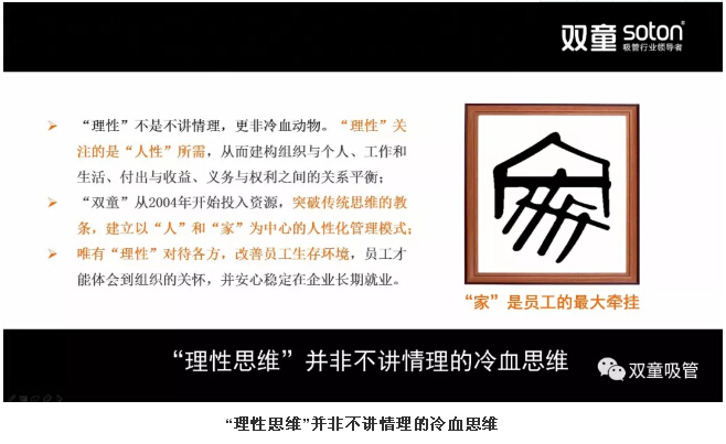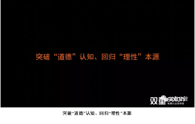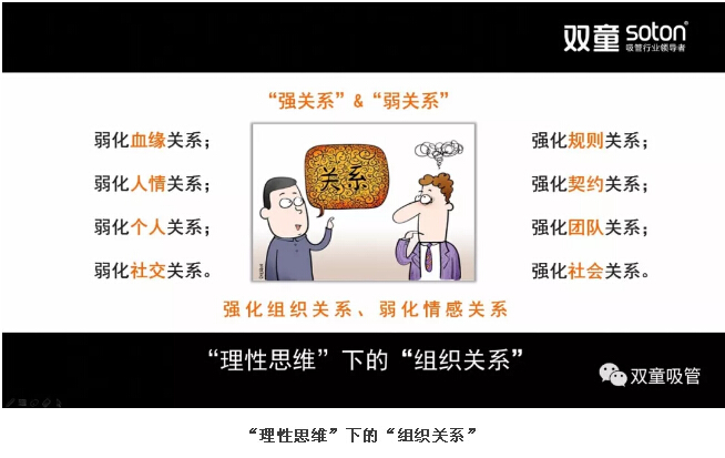 正是受到西方“理性思維”的影響和推動,“雙童”創(chuàng)立了一套組織關(guān)系哲學(xué)。弱化血緣關(guān)系,強(qiáng)化規(guī)則關(guān)系;弱化人情關(guān)系,強(qiáng)化契約關(guān)系;弱化個人關(guān)系,強(qiáng)化團(tuán)隊關(guān)系;弱化社交關(guān)系,強(qiáng)化社會關(guān)系……從而突破“道德”認(rèn)知、回歸“理性”本源!