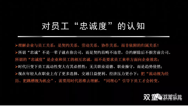 綜合以上案例,我們可以發(fā)現(xiàn)“理性管理”恰恰理解了企業(yè)不是單純的“掙錢機(jī)器”,從而把企業(yè)當(dāng)作一個“商業(yè)生態(tài)系統(tǒng)”來看待,從而洞察邏輯、理解因果、關(guān)注長遠(yuǎn)、關(guān)懷人性。我們對員工的態(tài)度,就是員工對企業(yè)的態(tài)度,員工體會到組織的關(guān)懷才能安心穩(wěn)定在企業(yè)長期就業(yè)。“理性”地“善待員工”實質(zhì)是引導(dǎo)員工“善待企業(yè)”!