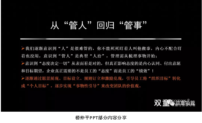 接下來,樓仲平進(jìn)一步引導(dǎo)大家:“作為中國人,在認(rèn)知‘理性思維’的前提下,我們并非要全盤接受西方的“純理性思維”,還是要結(jié)合中國人特有的‘感性思維’,通過‘人性關(guān)懷’的方式來處理與員工之間、經(jīng)營和管理方面的人際關(guān)系?!?/span>
