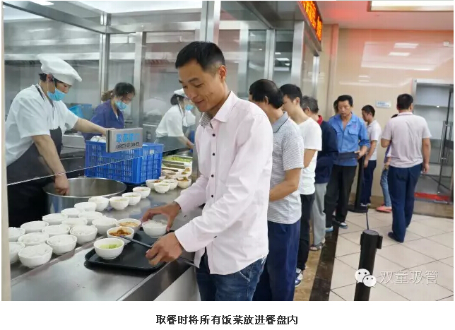 1、每到就餐時間,員工們會按秩序排隊自助取餐。