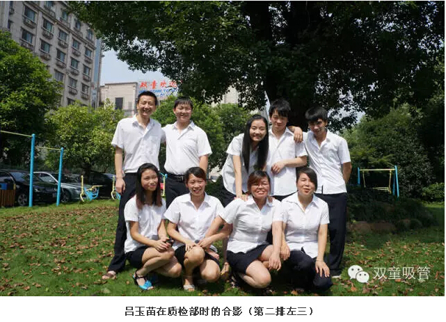 呂玉苗,是一位地道的安徽姑娘。她曾是“雙童”的一員,從18歲就到“雙童”工作,不僅提升了自己的工作能力,還在這里找到了自己的另一半,把家安在了“雙童”。2011年,年滿18歲的呂玉苗經(jīng)老鄉(xiāng)介紹來到“雙童”,從一線普工做起,從事了質(zhì)檢員、車間班長等崗位。