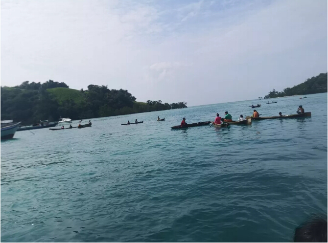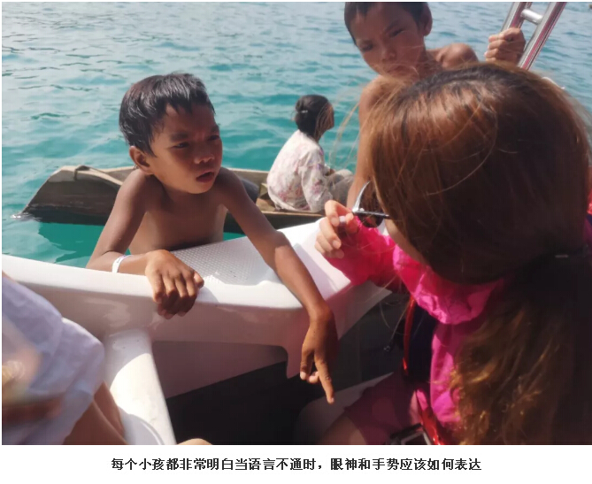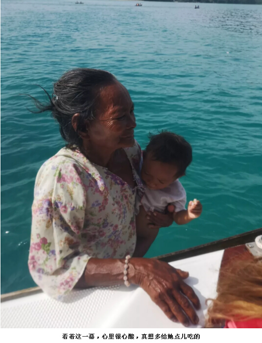 當(dāng)我們的快艇一放慢速度,我們就發(fā)現(xiàn)許多小船便快速朝著我們前進,說實話心里還是很恐慌的。當(dāng)船慢慢靠近了以后發(fā)現(xiàn),船上基本上是老人、婦人,最多的是小孩,他們曬得黝黑黝黑的,女孩子臉上還涂著黃白色的泥巴,睜著大大的眼睛,不斷地用目光搜尋你身上有沒有他們想要的食物。一旦發(fā)現(xiàn),就賴著你,用央求的眼神可憐巴巴地指著食物,希望你可以把食物分享給他們。我們翻遍了包包,只找到一罐口香糖。姐姐拿出一顆想給一個小女孩,那個小女孩竟然搖搖頭,指著那個罐子表示她想要一罐??紤]到不確定他們能夠明白口香糖是要吐掉的,我們就拒絕了她的要求。小女孩也不生氣,央求了一段時間后,便轉(zhuǎn)移目標(biāo),指了指姐姐頭上戴著的花,想讓我們把花也給她。這怎么行,我們也只有一朵,還是買泳衣的時候送的,后續(xù)大家可以看到這朵花不斷地出現(xiàn)在我和姐姐的頭上,發(fā)揮了卓越的裝飾作用……捂臉。