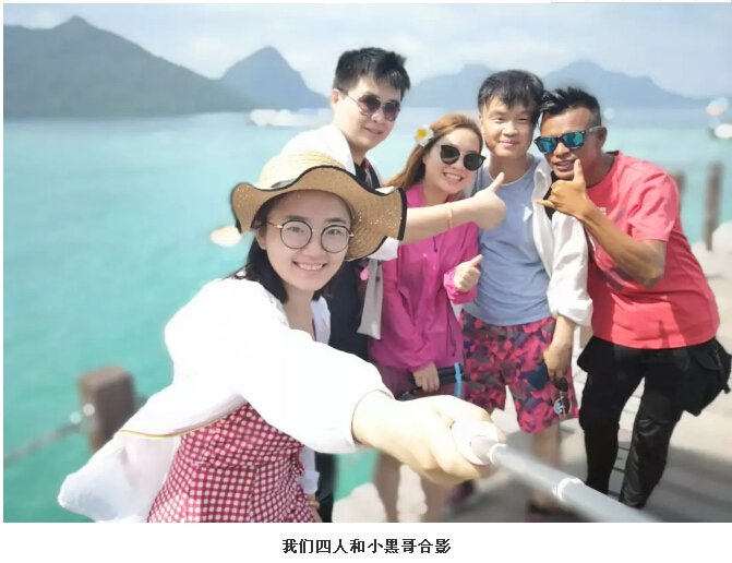 第二個島是珍珠島,原本是要爬一座小山,可以看到很美的風(fēng)景。但是到達后,小黑哥了解了情況后告知:昨天下了大雨,山上太滑,不能爬山。聽說了這個“壞消息”,我這個向來不愛爬山的人放下了心里的大包袱,哈哈!小黑哥說,我們可以在島上停留20分鐘,給我們拍照留念。于是,所有人都默默拿出手機開始拍照片……