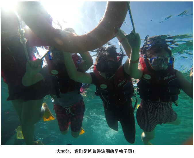 第三個島,是曼達布安島,我們也沒有上島,只是在島附近浮潛了。我們四只旱鴨子,抓著救生圈,小黑哥領(lǐng)著我們慢慢往遠(yuǎn)處飄。想象著自己是海上的一片浮葉,隨波蕩漾,睜開眼看看海底的珊瑚群和小魚兒游來游去……