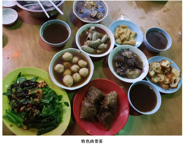 晚上,我們又去了加雅街,打卡了非常著名的佑記茶室,品嘗了特色的肉骨茶。肉骨茶就像是加了中藥的麻辣燙(這個形容我個人覺得挺貼切,肉骨茶愛好者不要打我),剛吃的時候覺得不習(xí)慣,味道怪怪的,怎么一股子中藥味呢?再多吃幾口,習(xí)慣中藥味道以后,你就能感受到食物和中藥融合以后的獨特鮮美。我們還點了肉粽,很軟,肉很多,棒棒的。