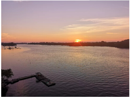 一路上繞來繞去,到達以后卻愣是沒找到入口,后面找到隔壁一家釣魚場的工作人員一問,才知道原來龍尾灣是早上開船過去,下午就坐船回來了,我們那個時間去,連工作人員都已經(jīng)下班回家了。好吧,那我們就往回趕,希望能在太陽下山之前找到一個沙灘再看一次落日。最后,沙灘沒找到,我們干脆停在了一座大橋邊上,在大橋上看完了我們在沙巴亞庇的最后一個落日。雖然不像沙灘邊那么絕美壯觀,卻也是別有一番滋味。