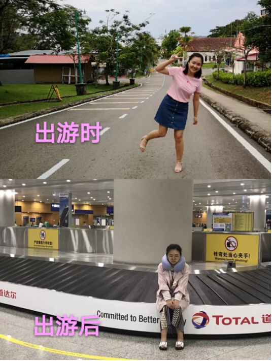 PS:最后說一個小插曲,可能是冷熱交錯,或者吃錯了什么東西,我是一路從亞庇機場肚子痛回了上海,再加上到達上海已經(jīng)是凌晨四點,整個人都虛到不行。在上海機場呆等行李時,姐姐竟然偷偷拍了一張我的照片,后面發(fā)給我時我自己都笑慘了。下面請欣賞一張本人“出游時”和“出游后”的對比照片: