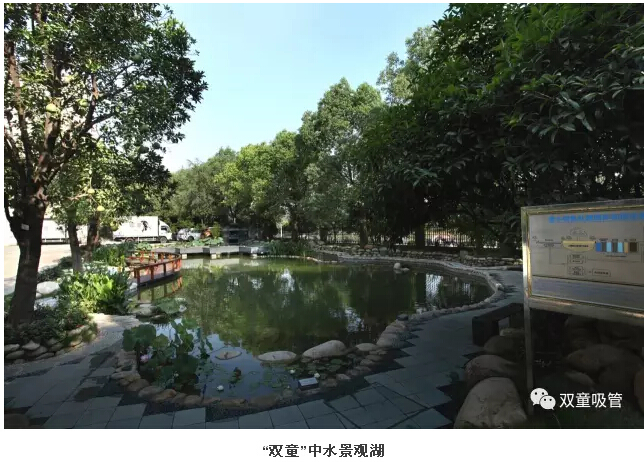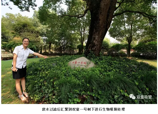 “雙童”景觀湖可不只是美化了環(huán)境,在碧綠的湖水下面還藏著中水儲存池呢!通過廢水收集處理循環(huán)利用系統,“雙童”將企業(yè)所有的工業(yè)廢水、生活污水在過濾后匯聚到“雙童一號樹”下進行生物吸附處理,再流入景觀池下面的中水池中。