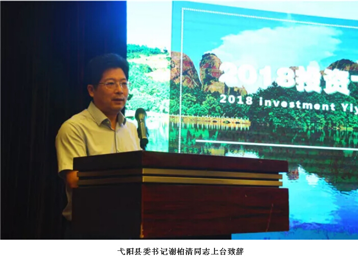 活動(dòng)開場(chǎng)后,弋陽(yáng)縣委書記謝柏清同志上臺(tái)致辭,并介紹了弋陽(yáng)縣的基本情況,宣傳和推介了弋陽(yáng)縣主導(dǎo)產(chǎn)業(yè)的投資發(fā)展具體情況。他由衷希望能夠促進(jìn)各類要素和創(chuàng)新資源向弋陽(yáng)集聚,并誠(chéng)摯邀請(qǐng)各位嘉賓到弋陽(yáng)走一走、看一看,領(lǐng)略青山綠水的魅力,尋找投資合作的機(jī)遇、開拓互利共贏的領(lǐng)域。