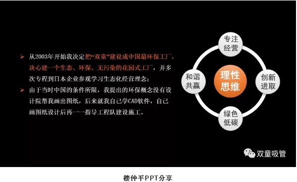很多來(lái)“雙童”參觀的客人們,都會(huì)驚嘆于我們這座零排放無(wú)污染的生態(tài)節(jié)能工廠,并不斷追問(wèn):“到底是哪家建筑設(shè)計(jì)公司給你們?cè)O(shè)計(jì)的廠房?”每當(dāng)此時(shí),吸管妞都會(huì)自豪地回答:“其實(shí)都是我們當(dāng)家人樓總自己設(shè)計(jì)的廠房!”那么,早在十多年前,整個(gè)社會(huì)環(huán)境都沒(méi)有倡導(dǎo)節(jié)能環(huán)保理念的當(dāng)時(shí),“雙童”樓仲平為何會(huì)選擇帶領(lǐng)企業(yè)走這條發(fā)展道路呢?這背后也有一個(gè)精彩的故事。下面,吸管妞就借“雙童”樓仲平在浙江大學(xué)授課時(shí)的一段視頻,揭秘其中的奧秘!