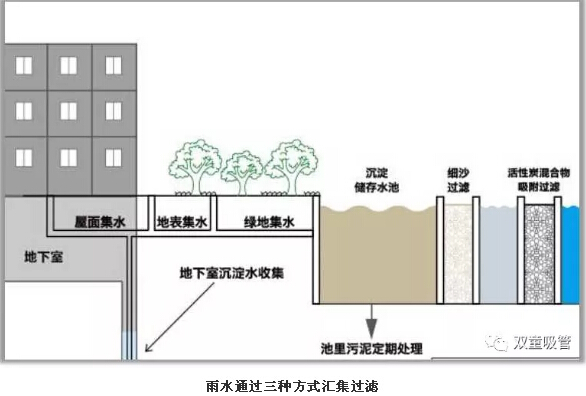 如此實(shí)用的系統(tǒng)是如何形成的呢?秘訣就是在屋頂、路面、綠化帶中做好雨水收集點(diǎn),用地下管道把它們連成一個(gè)整體,經(jīng)過科學(xué)過濾,匯集到一個(gè)占地700多平方米、總裝水容量近4000噸的雨水收集池。
