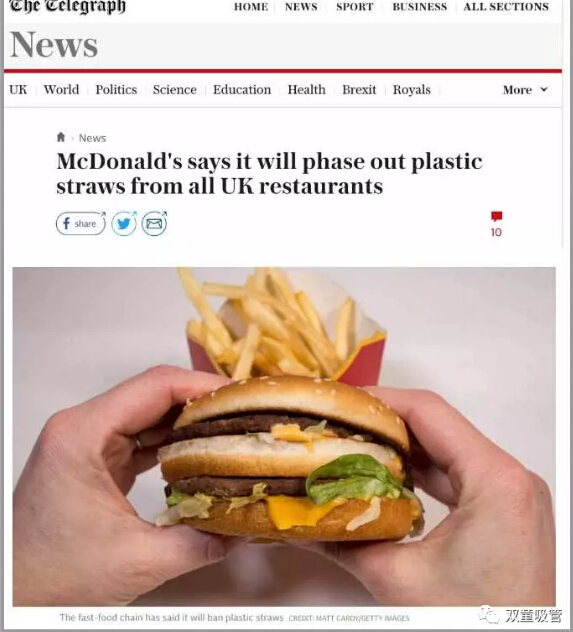近日,麥當(dāng)勞要停用塑料的新聞引起巨大轟動(dòng)。據(jù)媒體報(bào)道:麥當(dāng)勞宣布從今年5月開始,1300多家麥當(dāng)勞開始停用塑料吸管,試用紙質(zhì)吸管!這項(xiàng)計(jì)劃將從英國麥當(dāng)勞開始實(shí)行!麥當(dāng)勞英國首席執(zhí)行官PaulPomroy在接受采訪時(shí)說,麥當(dāng)勞使用的塑料吸管其實(shí)是可回收的,但越來越多的消費(fèi)者覺得用塑料吸管對環(huán)境不好,顧客方面的督促讓麥當(dāng)勞最終做出了這樣的決定?!半p童”意識(shí)到:塑料產(chǎn)業(yè)面臨徹底顛覆,吸管產(chǎn)品的行業(yè)革命已經(jīng)來襲!