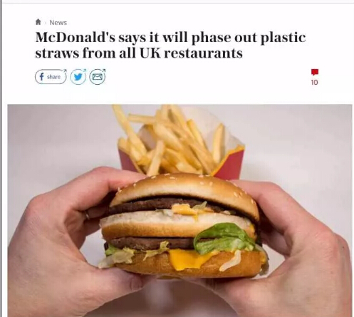 今年3月,麥當(dāng)勞宣布不再在英國門店中使用塑料吸管。