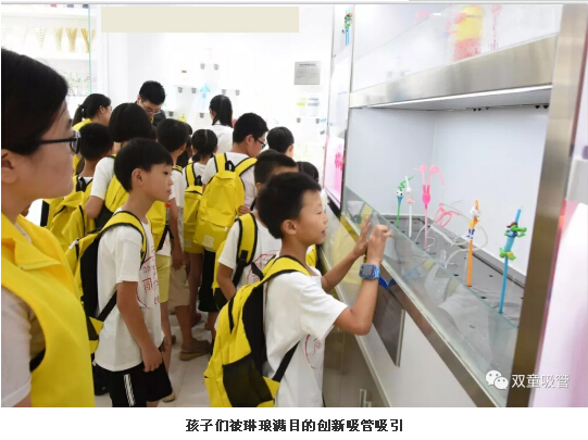 當(dāng)大家來到了“雙童”創(chuàng)新吸管體驗(yàn)區(qū)時(shí),眼鏡吸管、風(fēng)車吸管、哈哈吸管、愛心吸管吸引了孩子們的眼球,大家紛紛打call:這些吸管好漂亮,好想試一試用這種吸管喝水;這里真是吸管的海洋……