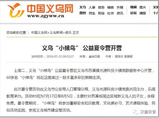 每年暑假,我們的城市都有一群來自遙遠(yuǎn)他鄉(xiāng)的“小候鳥”,與在外務(wù)工的父母團(tuán)聚。為了讓“小候鳥”們在義烏度過快樂時(shí)光,義烏市北苑街道辦事處、團(tuán)委等單位特地聯(lián)合主辦了2018“同心牽手,快樂義夏”的小候鳥夏令營活動!