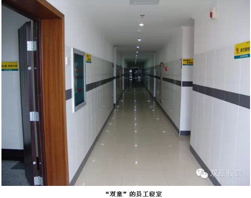 走進(jìn)“雙童”廠區(qū),第一印象是環(huán)境很整潔、衛(wèi)生。在員工宿舍區(qū),裝修了十多年的白墻有些泛黃,卻找不出一個手印或鞋印。這是為什么?樓道口的一塊標(biāo)語牌似乎道出了答案:環(huán)境好,是因?yàn)橛心?/span>