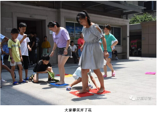 第二個(gè)游戲則是搭橋過(guò)河,可別小看這個(gè)游戲哦!因?yàn)榧议L(zhǎng)們要面臨的是:刺激的指壓板!沒錯(cuò)!就是指壓板!瞧!家長(zhǎng)站在起點(diǎn)的第一塊指壓板上,孩子拿起手中的第二塊指壓板,沿著終點(diǎn)方向擺放,搭好橋以助家長(zhǎng)過(guò)河。