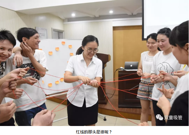 在暖場(chǎng)活動(dòng)結(jié)束之后,就是配對(duì)環(huán)節(jié)啦!如何配對(duì)呢?當(dāng)然要用上“紅繩”,讓姻緣一線牽,抽到同一根紅線的單身男女配為一組哦!