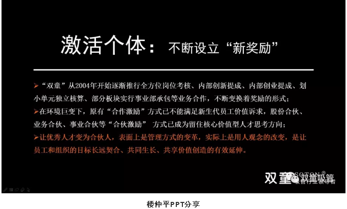 “所以,我們基本不用空降兵。這批人是我?guī)С鰜淼?,就深受我的影響,在乎工作、可以放下身段,整體素質(zhì)遠(yuǎn)超第一代管理者。這批第二代管理者培養(yǎng)起來后,至少打開了‘雙童’未來二十多年企業(yè)持續(xù)發(fā)展的窗口。”