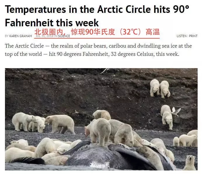 一則《北極圈罕見達(dá)到高溫32℃!北極熊瀕臨滅絕……》