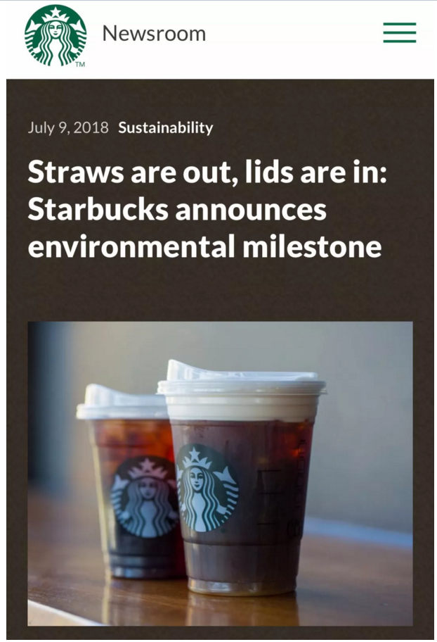 星巴克宣布禁用塑料吸管!