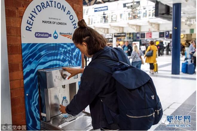 原來, 倫敦市長引進了20個新的公共飲水機,鼓勵人們自帶杯子取水喝,從而減少塑料垃圾。
