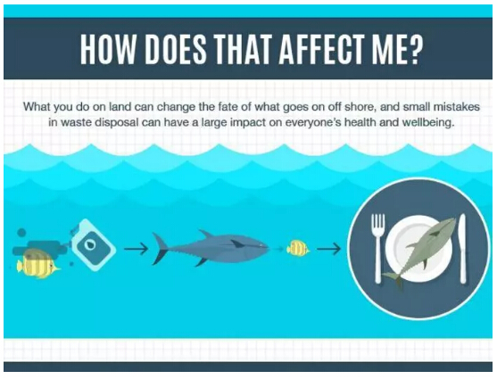 據(jù)調(diào)查,海鮮、牛肉、海鹽、自來水等都有被塑料污染的情況。 無法被分解的塑料進入海洋生物體內(nèi),沉積到血液、脂肪、肌肉里,最后又被人類吃下了肚。