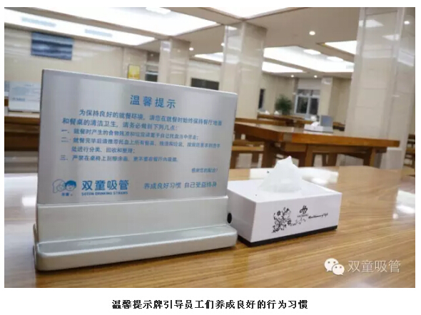 瞧!在每張餐桌上,都放著一塊精致的標(biāo)牌,溫馨提示著員工在就餐時(shí)哪些事情應(yīng)該做,哪些事情不能做,一目了然!