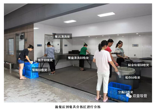 5、最后,我們來到餐具分揀區(qū),將餐余垃圾、紙巾、飲料瓶等分揀完畢就完成咯!不用洗碗的人生真是太幸福啦!