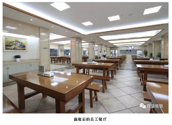 在“雙童”,500號(hào)員工就是按照以上步驟用餐的。上一批員工剛吃完,下一批員工可以直接就餐,后勤阿姨也不需要反復(fù)打掃餐廳衛(wèi)生,所有員工就餐完畢后,整個(gè)餐廳的衛(wèi)生依舊保持得很好!是不是挺牛的?