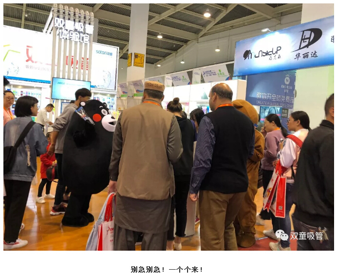 在網(wǎng)紅熊帶領(lǐng)下,“掃一掃送創(chuàng)新吸管”的活動(dòng)讓來(lái)往的客商們“欲罷不能”,現(xiàn)場(chǎng)十分火爆哦!別急別急!一個(gè)個(gè)來(lái),妞可是準(zhǔn)備了很多呢!