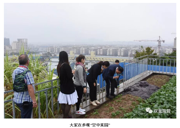 最后,大家來到了“空中菜園”,一走進(jìn)菜園,大家看到眼前的一大批蔬菜瓜藤,仿佛一下子進(jìn)入了另外一個(gè)世界??旨{女士對“雙童”的屋頂上竟然種了這么多的“寶貝”感到不可思議!