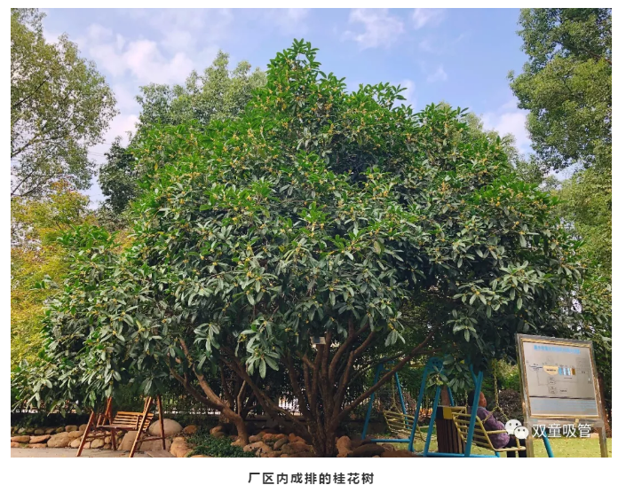 所謂“聞香不忘種桂人”,“雙童”樓仲平當(dāng)初在規(guī)劃廠區(qū)綠化時(shí),不僅在廠區(qū)地面種了數(shù)棵桂花樹外,還把桂花樹也種到了屋頂!“雙童”屋頂?shù)拿繅K種植區(qū)都有1米2深的土層,在建廠之初就考慮到了承重與防水的問題,所以可以放心栽種哦!