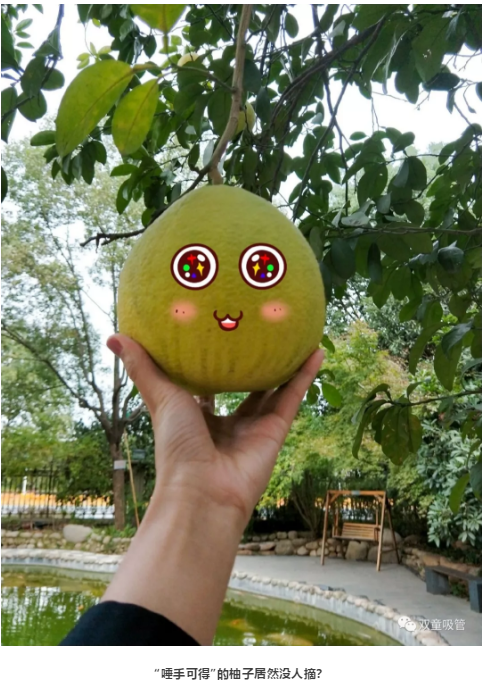吸管妞還發(fā)現(xiàn),有幾個(gè)柚子長(zhǎng)得非常的低,真的可以用“唾手可得”來形容,可是……竟然沒有吃貨來摘?這是怎么回事呢?