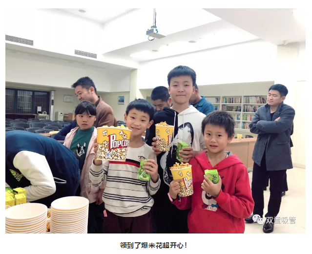 電影開始之前,大家早早的就來排隊領(lǐng)取“雙童”觀影標(biāo)配套餐:爆米花+飲料!還有小觀眾甚至自帶了放大版爆米花桶,對吸管妞說:“我今天的愿望就是把這桶裝滿!我和小伙伴就要這一桶!”吸管妞當(dāng)然要滿足他們的愿望啦,不夠還可以續(xù)“桶”哦