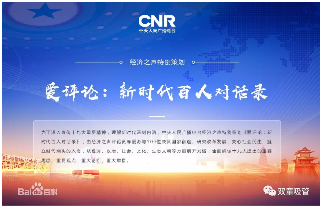 近日,中央人民廣播電臺經濟之聲播出《愛評論:新時代百人對話錄》改革開放四十周年特輯。其中,也播出了經濟之聲首席評論員陳愛海對話“雙童”樓仲平的專訪節(jié)目!