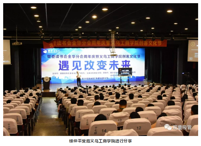 近日,在義烏工商職業(yè)技術(shù)學(xué)院建校25周年的校友代表大會上,“雙童”樓仲平作為首批畢業(yè)生也受邀參加并當(dāng)選了義烏工商學(xué)院校友會常務(wù)副會長,還作為校友代表進(jìn)行了發(fā)言!